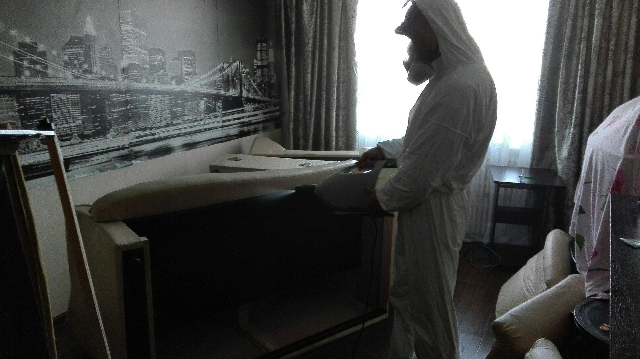 При обработке от клопов нашей санитарной компанией в Ярославле, специалисты — дезинсекторы обрабатывают инсектицидами места их обитания (кровати, диваны, обратную сторону околокроватных ковров) и места возможного расселения (щели вдоль плинтусов, бордюров, места отхождения обоев, вокруг дверных и оконных проемов, под подоконниками, вокруг вентиляционных решеток, щели в стенках мебели, ковры и картины с обратной стороны, сухую штукатурку при облицовке ею стен).